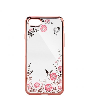 Луксозен силиконов гръб с цветя и камъни за Huawei Y7 2018 Rose Gold