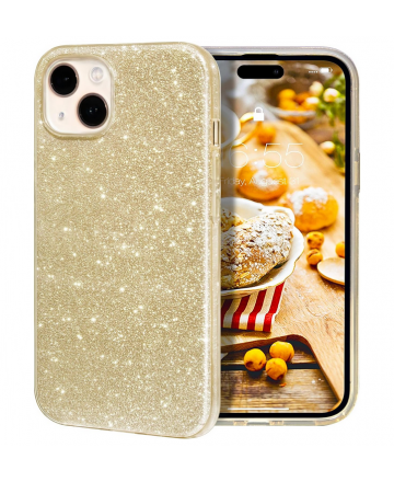 Блестящ силиконов гръб Shining за iPhone 15 Plus Златист
