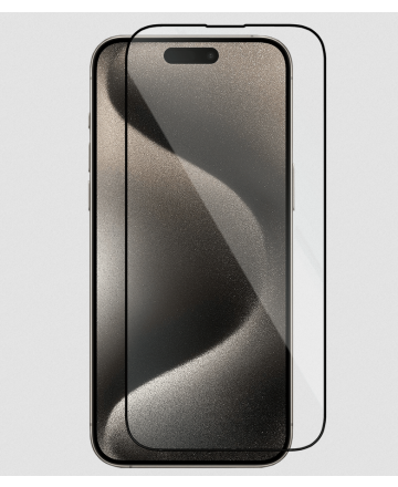 Извит стъклен протектор Full Glue за iPhone 15 Pro с черна рамка