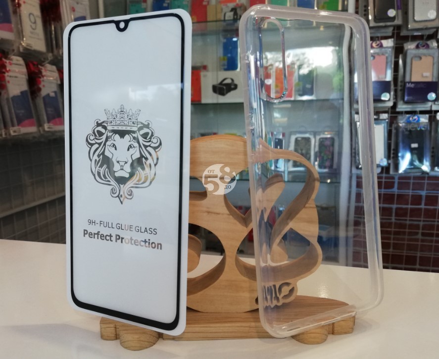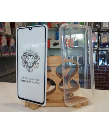 Промо пакет 5D извит стъклен протектор Full Glue + Armor Clear Case за Samsung Galaxy A70