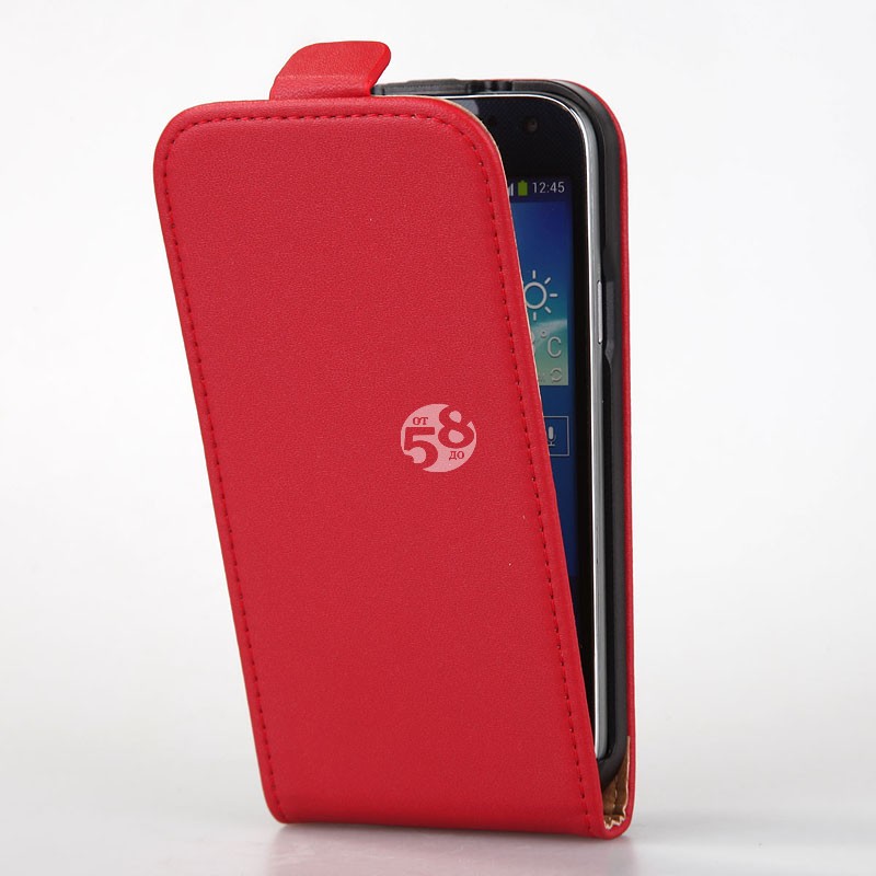 Вертикален кожен калъф тип тефтер с магнитно закопчаване.