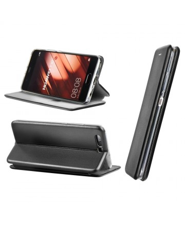 Хоризонтален кожен калъф тип тефтер с магнитно затваряне и силиконова каса.