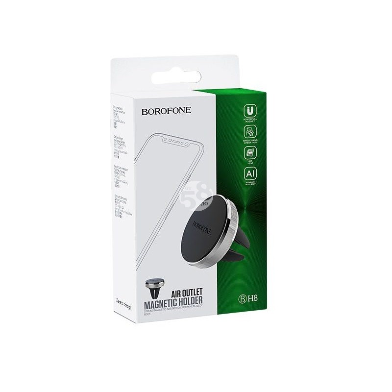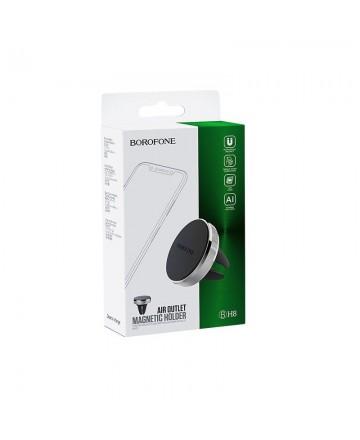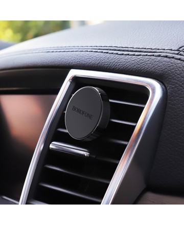 Xолдер с магнит за автомобил BOROFONE BH8. Удобна поставка с прикрепящ механизъм и магнит за смартфони, таблети и GPS устройства. Гарантира здраво и стабилно захващане. Направена така, че да се захваща на всички въздуховоди.