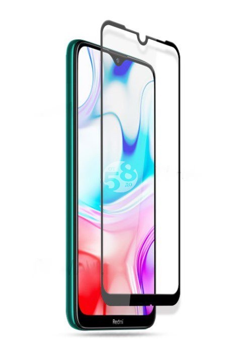 Извит стъклен протектор Full Glue за Xiaomi Redmi 8/8A с черна рамка