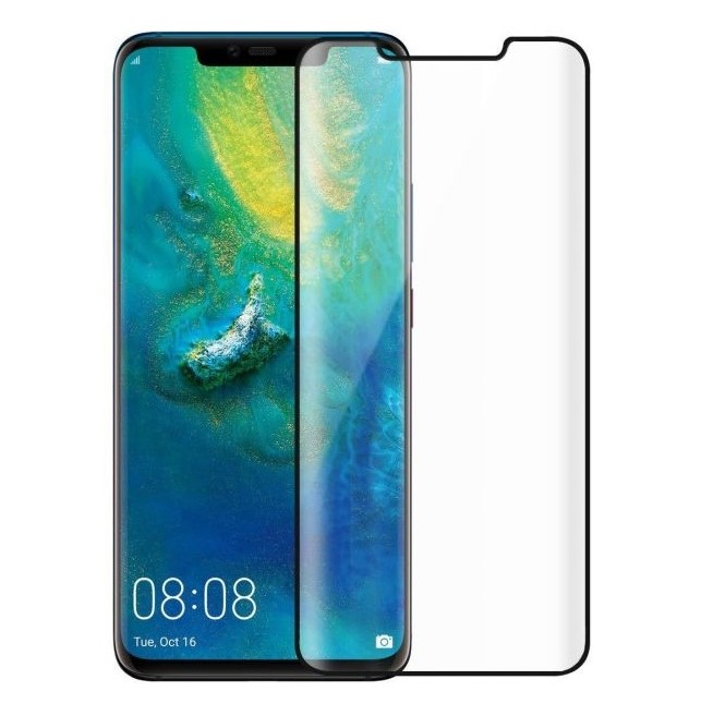 Извит стъклен протектор Full Glue за Huawei Mate 20 Pro с черна рамка