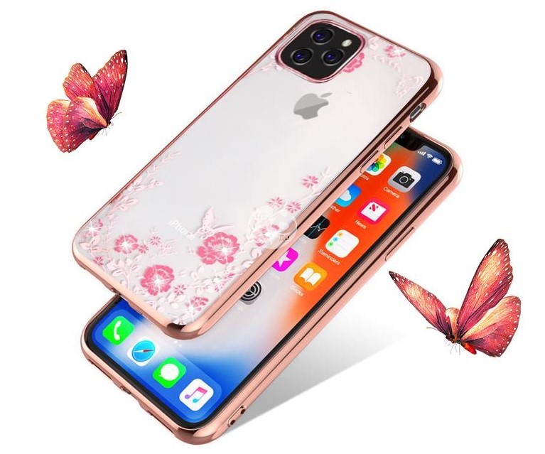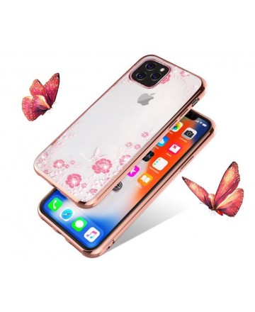 Луксозен силиконов гръб с цветя и камъни за iPhone 11 Rose Gold