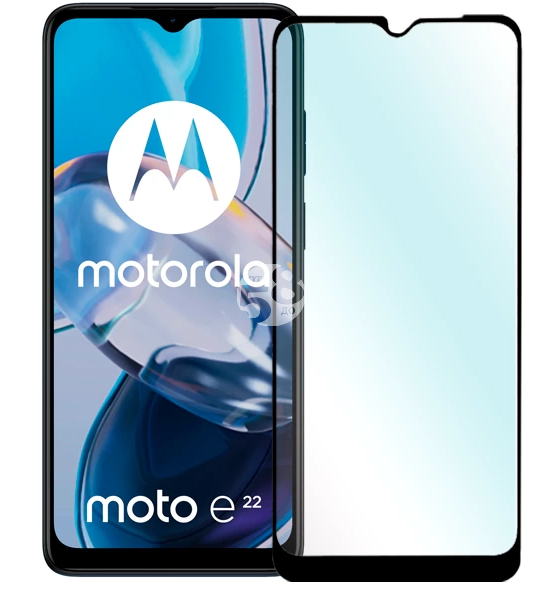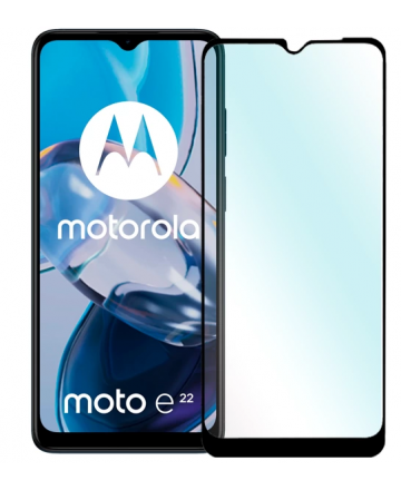 Извит стъклен протектор Full Glue за Motorola Moto E22 с черна рамка